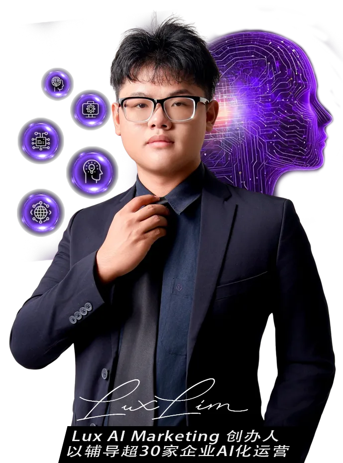 课程专门邀请了在AI营销经验丰富的 Lux(AI小弟)分享。Lux 专注于 AI 行销、是内容自动化与 SME 数码转型的实战讲师。