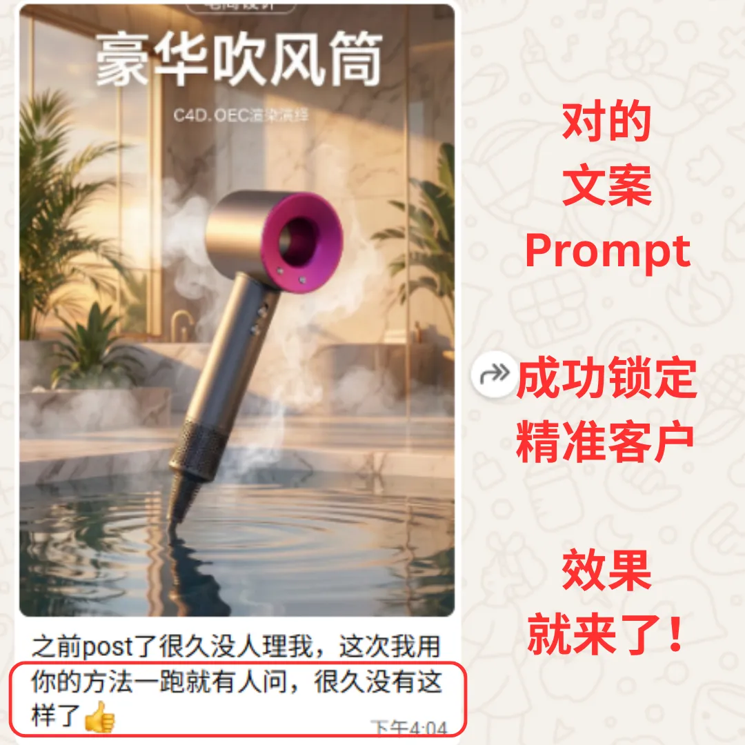 "以前玩 AI 总是生成不对人设、文案怪怪的,还以为必须付费才能变强。跟老师学了 Prompt 框架后才明白—不是 AI 不行,是我不会用。现在产出的图、文案都更专业。"